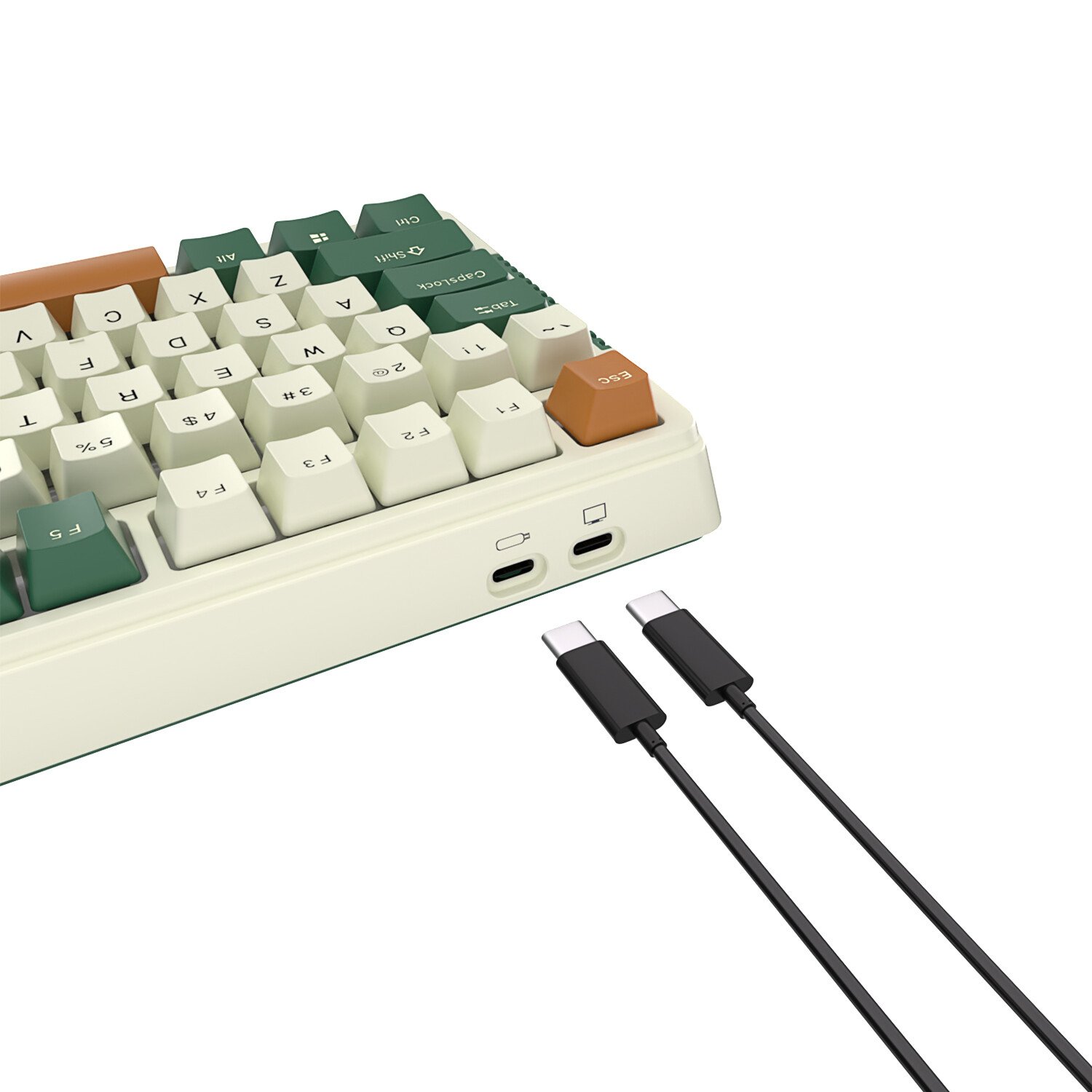USB-C JAGAJAKui valge mehaaniline klaviatuur on juhtmega ühendatud, saab mobiilseadme ja arvuti failiedastuseks ühendada teise liidesega. |